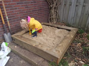 Built the little one a sand box this morning. My sister reacted ‘reinstating the sand box always meant spring had really started’ when her children were young. Ergo, spring is here now.